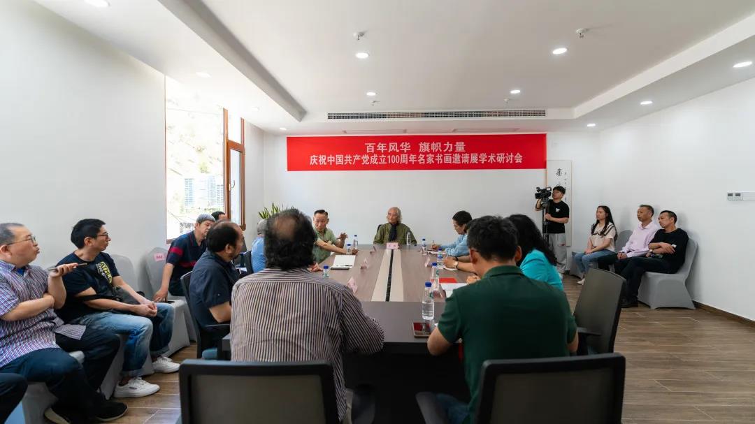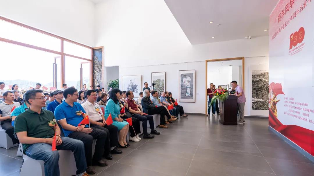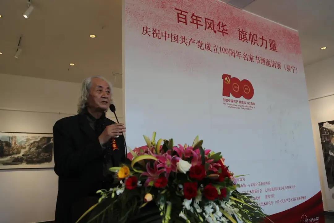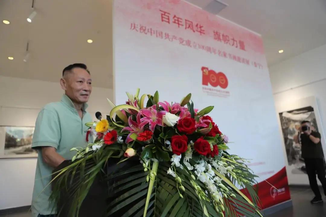 所展的50多幅作品大多来自于中国美术家协会40位书画家的精心创作,这些作品以泰宁红色历史传承为依托,用书画形式再现党的丰功伟绩,铭记党的奋斗历史,展现我党百年的梦想、追求、担当,表现出了每一个艺术名家浸润着对党的深情,描绘着祖国大美山水,唱响了共产党好、社会主义好、红色泰宁好的时代主旋律,为泰宁县带来了一场别样的艺术盛宴。 中国美术家协会理事、北京美术家协会副主席 韩振刚: “我这次是第一次来泰宁,以前虽然来过福建,可是真正到这种大山里边,这么美的景色,还是第一次,感受非常深,尤其是今天早晨起来特别凉爽,到现在又阳光明媚,感觉心情也特别好,这次的展览,我交的是北京京郊的一张雪景,到这来以后,也听到了很多简述当年红军的故事,有很多故事我听了也是非常感动,这次展览大部分作品都是跟红军、革命故事有关系的,因为这次展览也是一个主题展,中国共产党建党100周年,我们这又是革命老区,所以这次展览非常有意义。” 开幕式后,王仲、李呈修、段铁等有关专家学者及部分艺术家代表参与了“百年风华 旗帜力量”——庆祝中国共产党成立100周年名家书画邀请展学术研讨会,会议由王仲先生主持,在座理论家、艺术家均对参展作品给予了高度评价,并提出了各自富含前瞻思想的观点和洞见,利于开阔视野、集思广益,亦利于业界修正不足、引领进步。