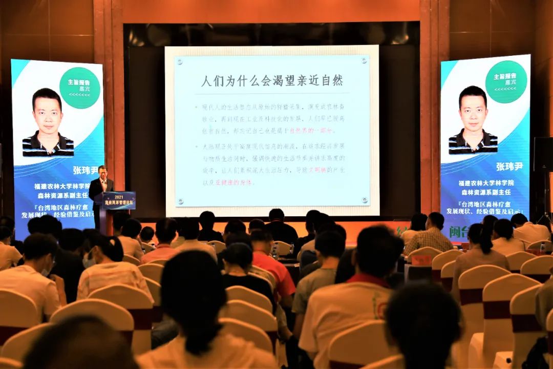 论坛特邀中国林学会森林疗养分会理事长刘立军,福建省眼科研究所所长徐国兴,台湾森林保健学会常务理事、福建农林大学林学院副教授张玮尹分别作题为《大陆森林疗养的发展现状与趋势》《海峡两岸视觉健康领域合作回眸与展望》《台湾地区森林疗养发展现状、经验借鉴及启示》的主题报告。泰宁县人民政府副县长黄丽玲就泰宁森林康养典型经验作了介绍。