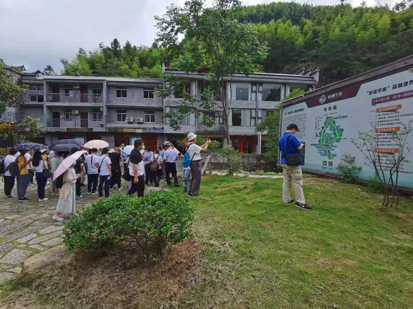 近日,2021海峡两岸管理论坛参会代表,约130人到耕读李家森林康养基地参访。