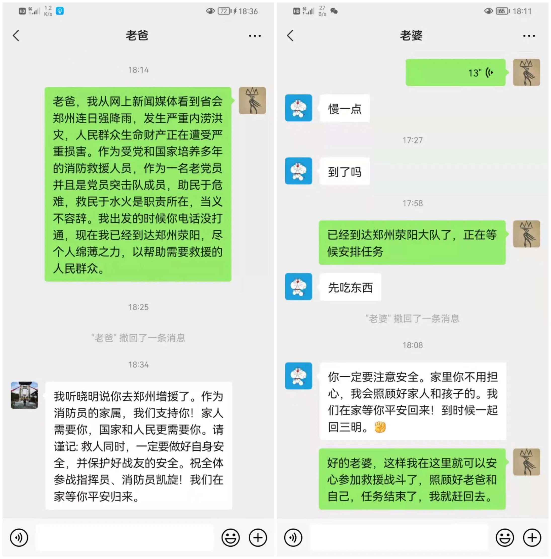 ▲图为崔朋飞与家人的聊天记录 这份铿锵有力的请战书和对家人只言片语的交代,道出了消防指战员为家乡抗洪救灾义无返顾的赤子之心,让我们来认识一下这位“蓝朋友”吧!