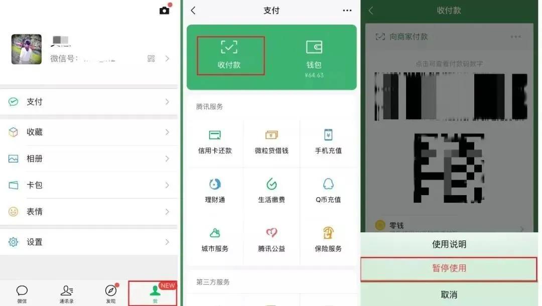出于资金安全的考虑,微信也可暂停使用二维码付款,等需要消费的时候再开通,具体操作步骤:打开微信支付页面,点击“我”→支付→收付款→暂停使用。