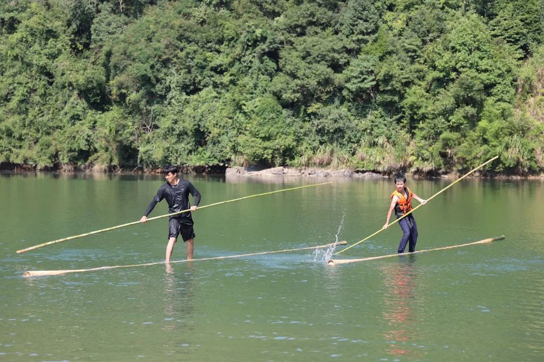 据了解,开善乡池潭村的民间技艺独木漂从古有之,历史悠久。古时当地人借助河道运输木材,为了追赶冲散的木材,逐渐练就了这门技艺,在八九十年代的池潭村,独木漂是每个年轻人的一项必备技能。随着时代发展,独木漂逐渐成为了一项民间体育运动和表演项目。 池潭村党支部副书记蓝昌福:我们组织此次独木漂教学,目地是为了做好这项非物质文化遗产的传承与保护,接下来我们将加强训练,并做好这项非物质文化遗产的申报工作,让历史文脉更好地传承下去。