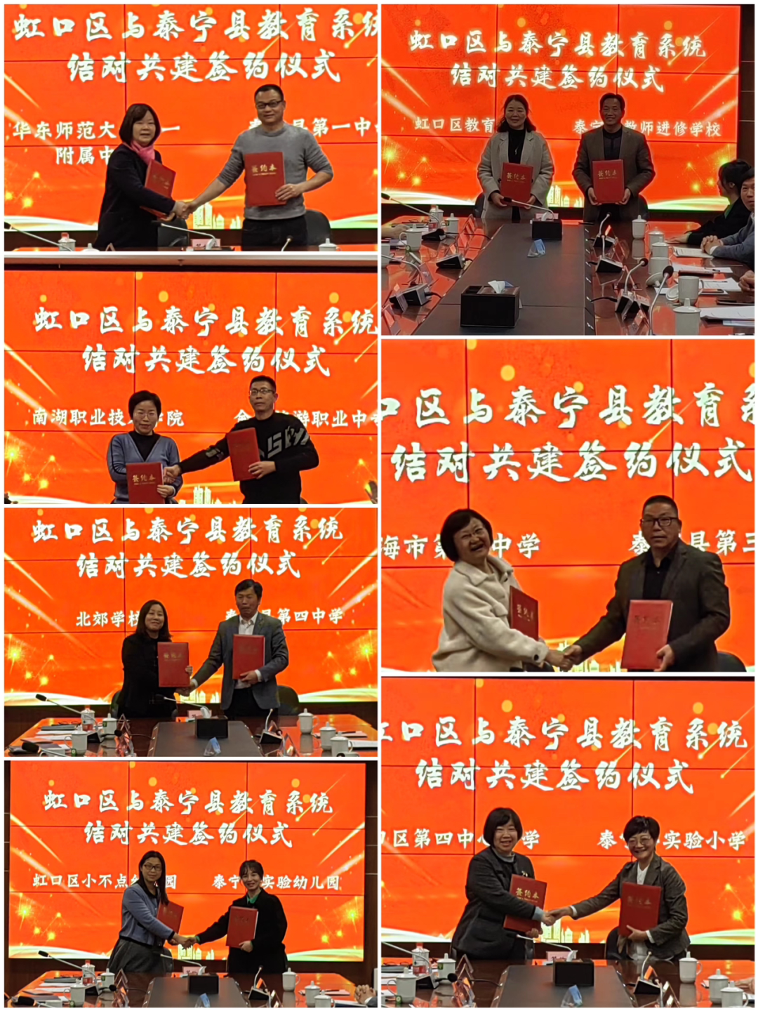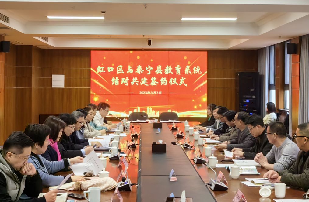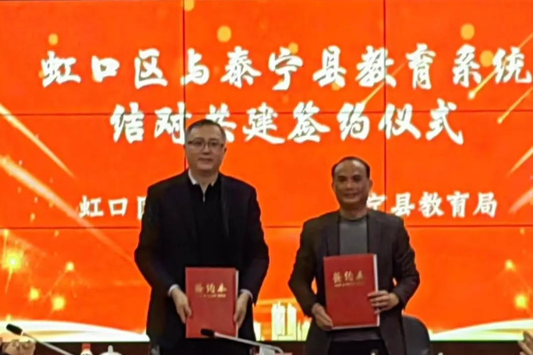 随后,泰宁县教育局与虹口区教育局举行对口合作协议签约仪式。虹口区教育局局长孙磊、泰宁县教育局局长高文珍、两地对口合作教育局分管领导、科(股)室负责人和结对共建学校校长参加签约仪式。