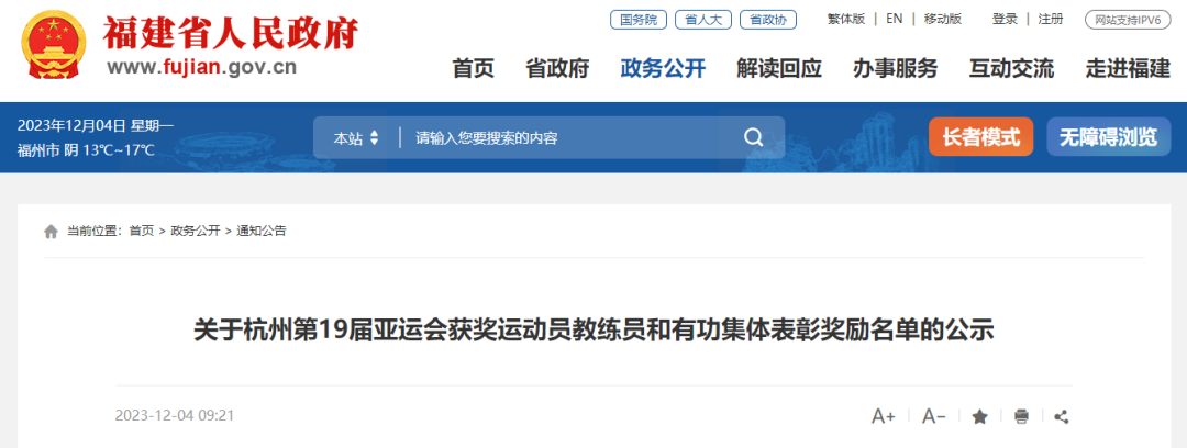 近日,福建省政府拟对福建参加杭州第19届亚运会获奖运动员教练员和有功集体进行表彰奖励。