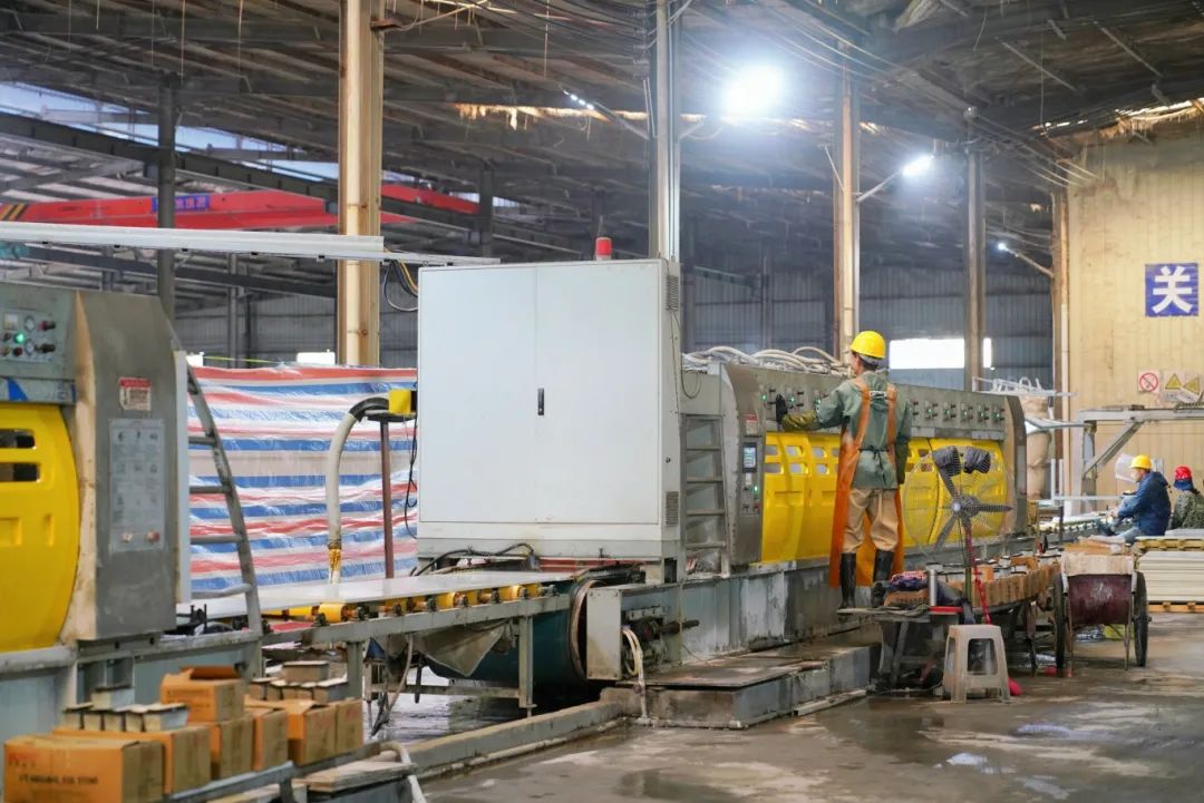 技改提升是重塑企业核心竞争力的“加速器”,也是推动民营经济高质量发展的重要因素。 随着市场环境的不断变化,去年3月,公司投资1500万元进行生产线技术升级改造,建成年加工200万米石英石的自动化生产线,实现了节支降本、减员增效的预期效果。 “本次技改提升生产线实现红外扫描,自动吸盘、挖孔、多边锯、磨边等流程全部自动化后,工人只需要原来的三分之一,产品的附加值提升1.5倍以上,同时生产效能提升了2倍,预计年产值可增加1000万元左右。”黄林滨说。