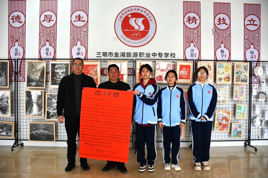 近日,家住泰宁县林委小区的游先生专门来到三明市金湖旅游职业中专学校为学生张梓桐、张田英、郑霁文送上了感谢信和锦旗。感谢信中,每一个字都饱含着感激之情,称赞他们是新时代的好少年,行为温暖人心,为社会树立了榜样。