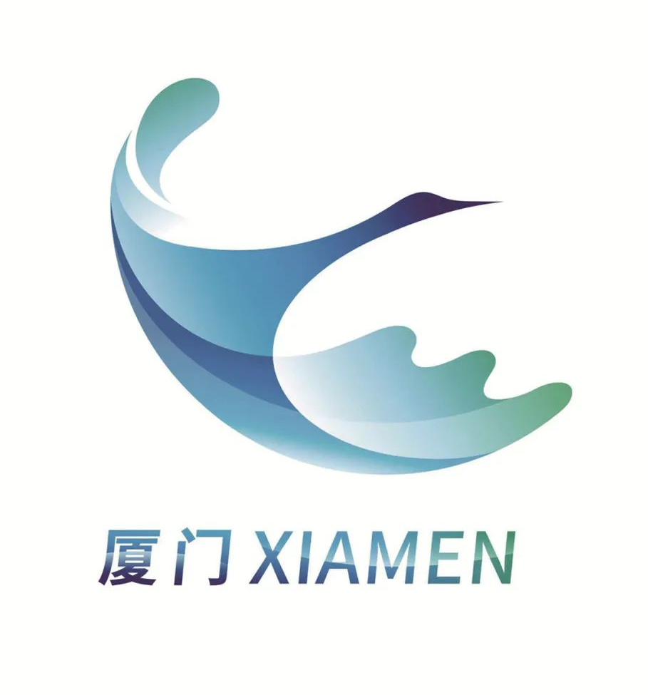 武汉城市形象标识以繁体“漢”字为创意,融入篆书。左侧三点水呈人型交叉状,指代长江、汉水。右侧融入楚文化与武汉元素,上部为楚国双联玉舞人造型,中部简化成“中”字,下部似琴座。标识以中国印展现,主色为渐变“楚红”,英文字体采用水墨毛笔书写,兼具文化底蕴与国际感。 厦门