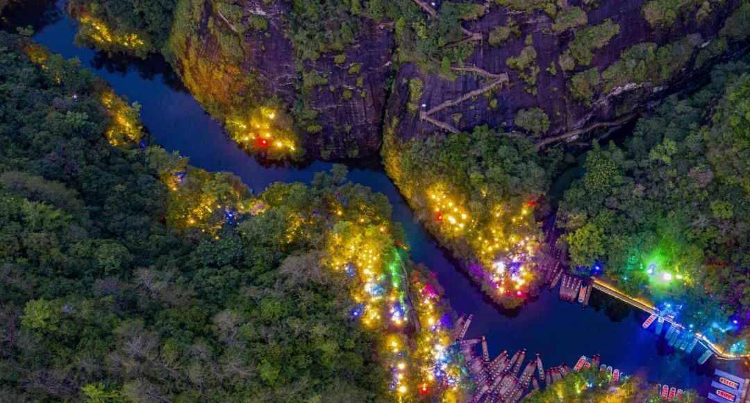 上清溪、大金湖、九龙潭,澄澈的湖水蜿蜒于丹霞赤壁之间,作家们泛舟其上,山水相依的美景如诗如画,让他们沉醉其中。