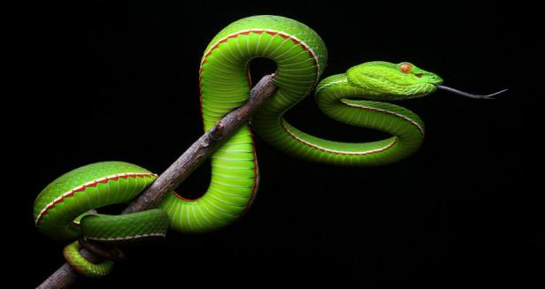 全身翠绿、三角头,在灌木、竹林、茶园、溪边、绿化带活动,保护色佳,不易察觉。咬伤后剧痛、肿胀、出血。 烙铁头蛇