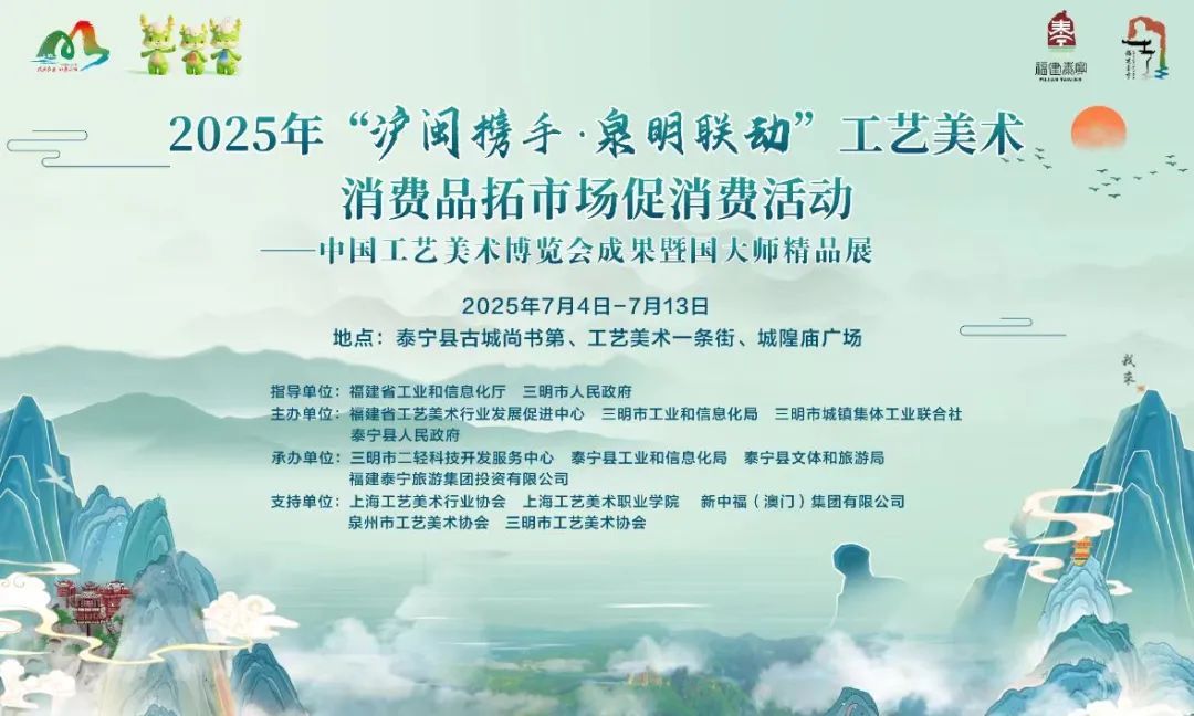 @泰宁的小可爱们, 尽情买买买的机会来了! 7月4日至7月13日, 2025年“沪闽携手.泉明联动” 工艺美术消费品拓市场促消费活动 将在泰宁县古城尚书第、城隍庙广场、 工艺美术一条街举办, 活动内容提前Get!