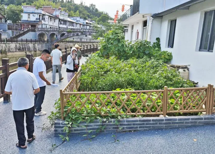 7月12日,漫步在泰宁县梅口乡滨水步道,沿河蜿蜒的仿竹围栏内,翠绿时蔬与娇艳花卉错落相映,村民俯身打理“袖珍菜园”的身影,生动诠释着当地环境整治的巧思——既守牢百姓“菜篮子”,又扮靓乡村“颜值”。
