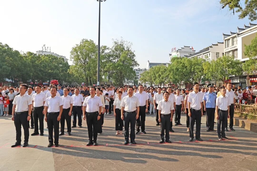 县四套班子领导,县直有关单位主要负责人,群众代表、中小学生代表及自发前来的社会各界人士一起参加升旗仪式,共祝祖国繁荣富强。