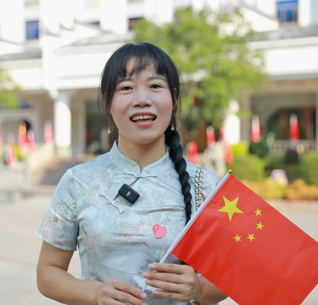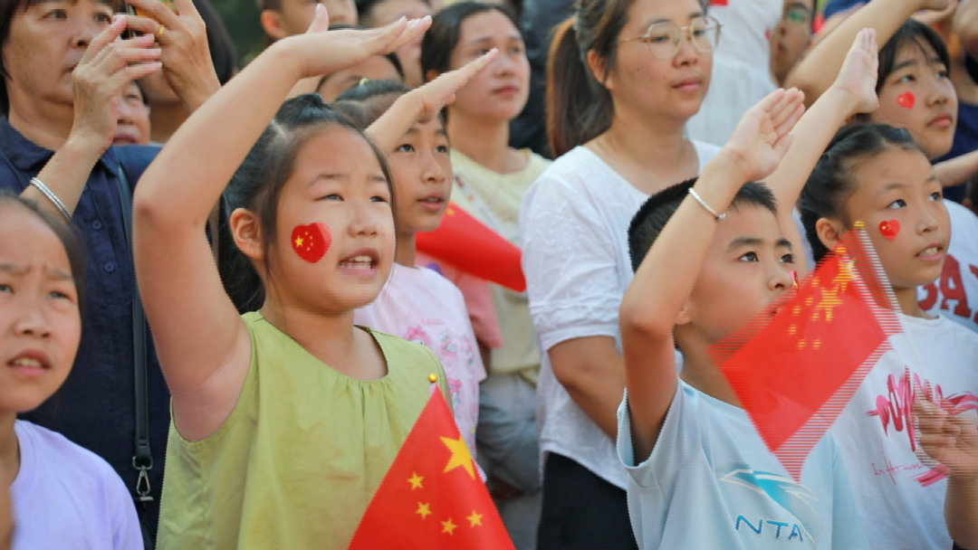 学生江歆睿:“升旗仪式非常震撼,军人哥哥们站得非常直,很帅气。今天,我想对祖国母亲说一声,祖国我爱你,祝您永远繁荣富强。”