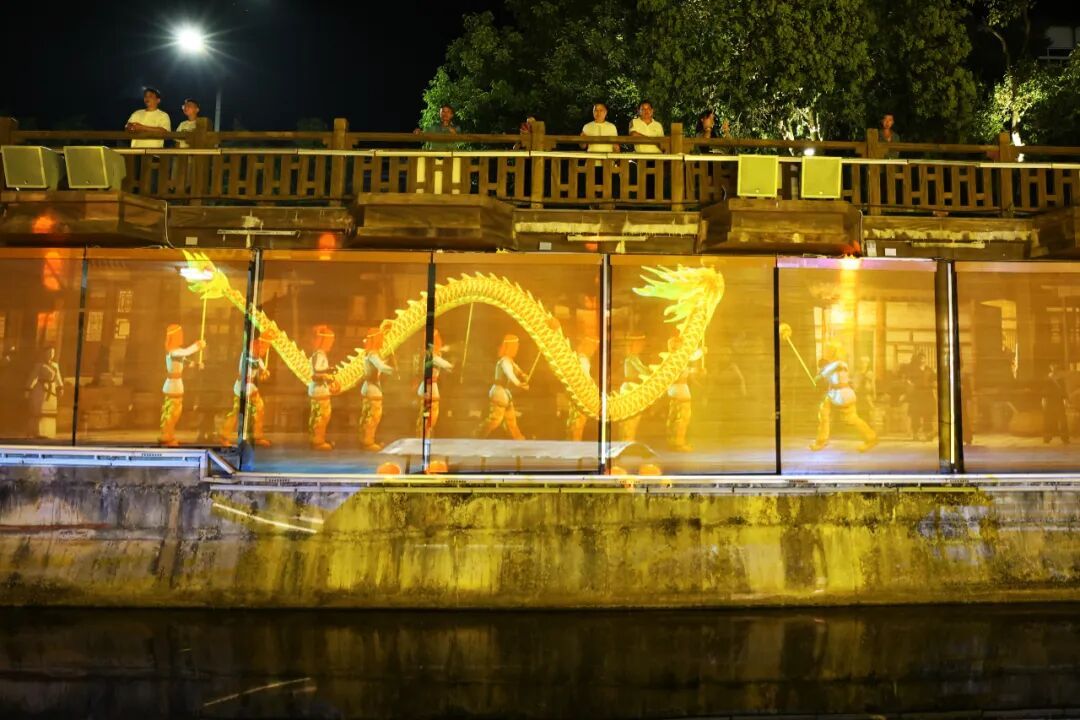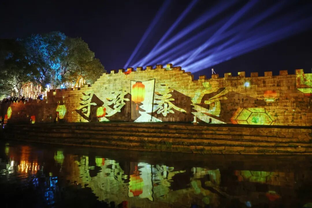 十里金溪夜游项目 作为全市唯一以内河为载体的大型沉浸式夜游示范项目,十里金溪夜游以5公里“十里金溪”为灵动轴线,巧妙串联击鼓鸣志、两宋鼎盛状元情、梅林古戏、傩舞狂歌等九大特色场景。它借助声光电技术、水幕投影与真人实景演绎,让游客在50分钟的悠然航程中,沉浸式“触摸”古城深厚文脉。
