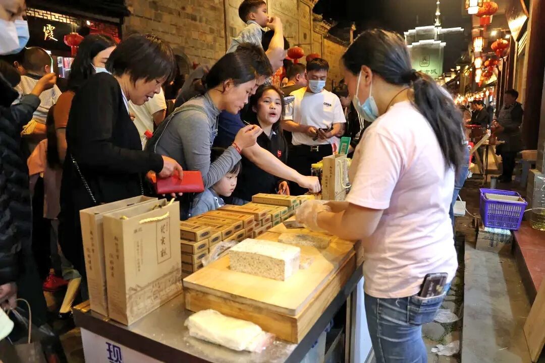 泰宁特色小吃摊 据统计,国庆期间古城夜间客流量同比增长21%,市集日均销售额成倍增长,古城周边餐饮、住宿订单量也同比增长,部分酒店、民宿预定热度攀升,已实现连续多日预定客满,这种消费热度也反哺日游市场,形成“白天游山水、逛古城,夜晚赏夜景、品文化”的良性循环。
