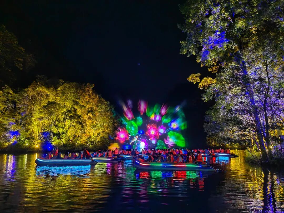 游客可选择乘坐34艘“游龙竹筏”或10艘“画舫竹筏”顺流而下,开启独特的夜间游览体验。该项目不仅填补了泰宁夜间沉浸式体验游的空白,也与九龙潭夜游形成差异化互补——前者聚焦古城文脉与非遗传承,后者侧重自然山水的夜间光影之美,为游客提供多元夜间游玩选择。