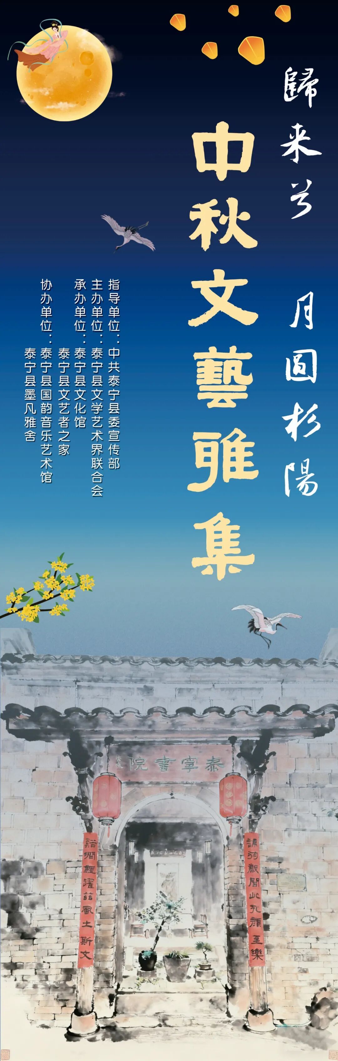双节同庆,家国共圆 值此思念萦怀、祝福盈门的美好时节 我们以明月为邀,以文艺为桥 诚邀您共赴一场浸润诗情与雅趣的 中秋之夜。 活动预告 一、雅集主题 泰宁县中秋文艺雅集 二、雅集信息 时间:2025年10月6日(周一)20:00-21:30 地点:泰宁县进士巷文艺者之家 指导单位:中共泰宁县委宣传部 主办单位:泰宁县文学艺术界联合会 承办单位:泰宁县文化馆、泰宁县文艺者之家 协办单位:泰宁县国韵音乐艺术馆、泰宁县墨凡雅舍 活动亮点 艺术长廊互动区:中秋灯谜、非遗展示、汉服演绎 书画体验区:扇面书写、灯笼绘制、祈福书签 文艺雅集晚会区:诗词吟诵、器乐演奏、茶艺表演 月圆聚泰宁,古城共婵娟。 10月6日晚 20:00, 让我们相约泰宁县文艺者之家, 在琴韵书声与诗情画意中, 感受属于泰宁的温情与传统之美! |
