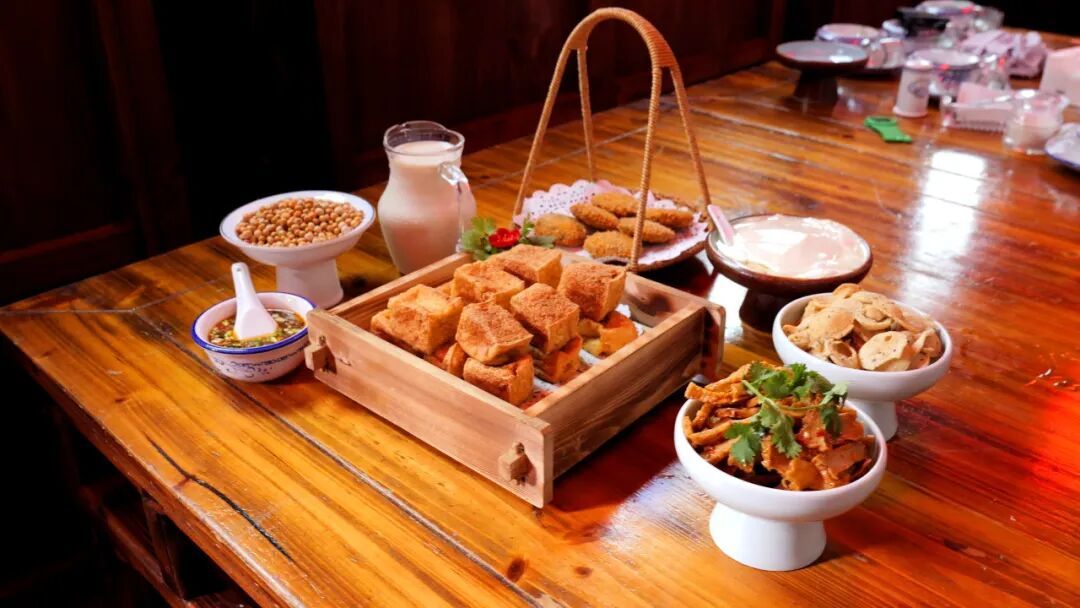 大金湖有机鱼宴,游浆豆腐裹着月光入馔,岭红米酒斟满秋思。九举巷擂茶声声,一钵茶汤里浮沉着千年月色。 非遗映月