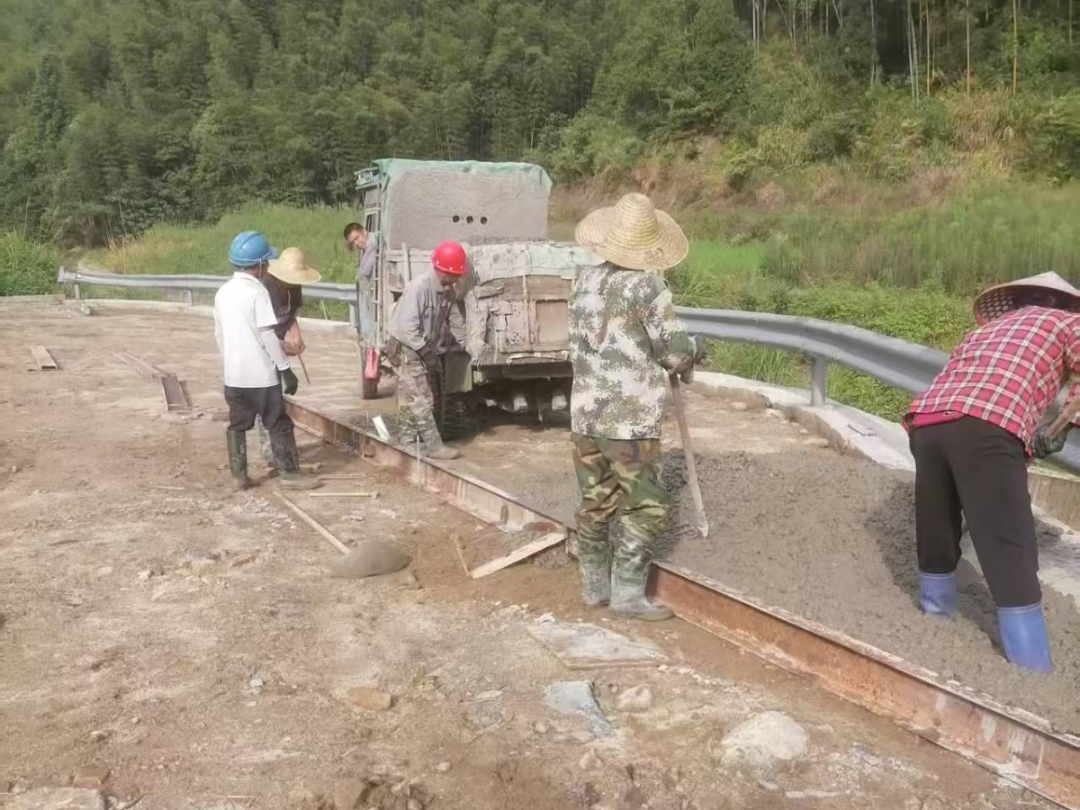 外凹村出入口拓宽工程施工现场 这条路一头连着外凹组,一头连着枫源村至乡集镇的通村路,是村民日常出行的必经之路,因道路狭窄,未建设错车道,给村民带来一定的安全隐患。 “群众的诉求就是我们的解题方向”。为了彻底解决这一安全隐患,接到村民诉求后,枫源村党支部充分发挥支部带头作用,多次深入村民家中走访调研,倾听大家的意见和建议。探清民情后,党支部充分运用“155”能人服务工作机制,召集村内能人商讨对策。会上,严永长、范祖应等能人主动接单,会后便联合周边村民集资购材,指导村民投工投劳,开始了紧锣有序的施工。 解行忧暖民心,干群合力铺就幸福路 烈日下,严永长、范祖应等能人汗水湿透衣衫,带着村民们浇筑混凝土,忙着加宽路面,专注的神情只为能提早完成工程。施工过程中,枫源村党支部高度重视,安排党员李梦、黄桂辉跟单,负责现场监督,确保工程严格按照规划和质量标准进行。这条路段经拓宽后,已彻底解决困扰村民多年出行难题,成为了连接民心的“幸福路”。