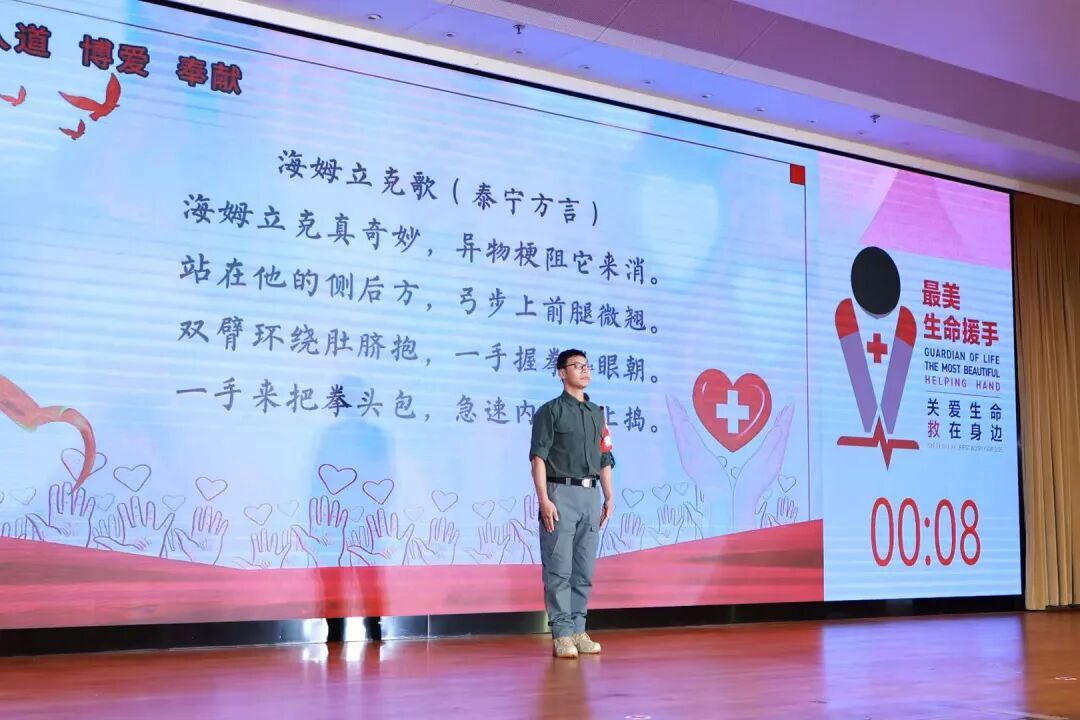 在演讲比赛环节,庄章琳别出心裁,创新性地使用泰宁方言演唱“海姆立克急救法”歌谣。这种寓教于乐、通俗易懂的科普形式,将专业急救知识与地方文化特色巧妙结合,扎实开展应急救护进农村活动,赢得了评委们的高度肯定和现场观众的热烈掌声,成为比赛中的一抹亮色。