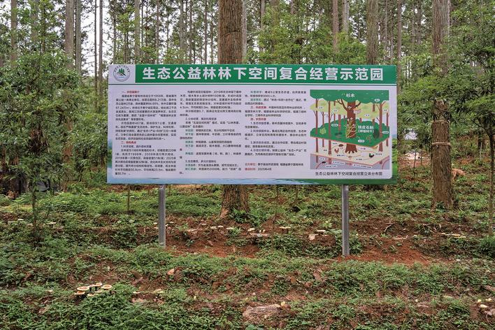生态公益林林下空间复合经营示范园 立体经营激活“四库”潜能 泰宁县森林资源丰富,林下经济经营面积达27.53万亩。作为“国家林下经济示范基地”,泰宁县去年10月发放了首本林下空间经营权证书,林农邓仁义在朱口镇音山村林下种植517亩黄精、草珊瑚,拓展了生态产业路径。 林下种什么、怎么种、如何销?这对于散户来说是一道难题。盲目种植,不仅风险高,更会挫伤林农积极性。 泰宁国有林场的林下种植给了人们全新的思路。这里海拔300余米,生态公益林2万亩,其中生态公益林复合经营示范园467亩。其主林层是上世纪80年代种的杉木,经过四次择(间)伐,每亩保留杉木32株,释放了林下空间,改善了林内环境,林木生长具备更好的条件。 涵养水源、保育土壤、固碳释氧、净化环境……养护得当的生态林持续发挥生态功能。可是,生态林仅仅只有生态效益吗? 答案是否定的,推动“生态产业化、产业生态化”更加符合森林可持续发展的要义。 本着兼顾生态、经济、社会效益的原则和森林可持续经营的理念,2019年,林场在主林层下套种木荷、楠木、枫香、栾树等乡土阔叶树种,每亩套种100株,形成针阔混交、异林复层的稳定林分结构。 林分逐步提升,改良环境的同时,广阔的林下发展空间成为人们关注的焦点。 去年起,林场在林冠层充分利用树干空间绑植粉佳人、泰斛1号等新品种铁皮石斛,在林下层套种草珊瑚、牛奶根、三叶青等食药同源特色药材,地表层种植黄精、山姜等耐阴药用植物,地下层则栽培灵芝、大口蘑等特色菌类,最后加以林禽、林蜂养殖,构建五层空间的充分利用模式,森林俨然成为硕大的立体“粮库”。