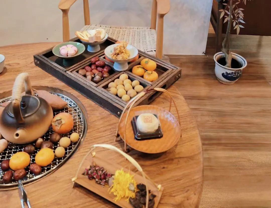 若想彻底放空, 就去古城的却尘居围炉煮茶。 土陶泥炉里炭火噼啪作响, 铁丝网架上的茶壶咕嘟冒泡, 三五好友围坐闲谈, 茶香混着炭火的暖意, 把寒意都隔在门外。