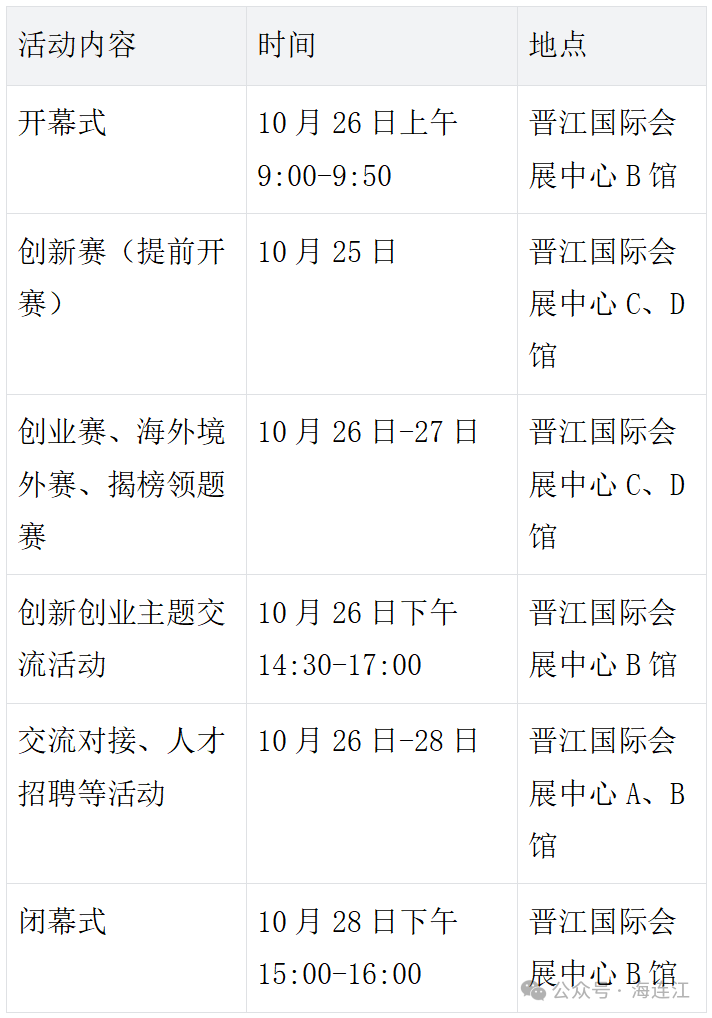 | 万众期待的第三届 全国博士后创新创业大赛总决赛 即将开幕! 这是我国规模最大、层次最高 覆盖面最广的博士后赛事 以“博创引领四十载 智汇赋能向未来”为主题 2950名博士后齐聚泉州晋江 带来一场横跨多个领域的 科技创新与创业狂欢 为了让大家精准get观赛重点 特意梳理了这份核心亮点+实用指南 快收好! 多组别多赛道 硬核科技超有料 这次大赛一共设了4个组别——创新赛、创业赛、海外境外(“一带一路”)赛和揭榜领题赛,还覆盖了7大热门赛道。每个赛道都有自己的特色,不管你是对前沿技术好奇,还是更关注产业落地,都能找到想要的内容! 四大组别 各有特色 创新赛:10月25日就提前开赛啦,主打基础研究和应用技术创新,有很多还在研发关键期的硬核技术,搞科研的小伙伴、企业研发负责人可千万别错过,能摸清技术研发的最新趋势。 创业赛:10月26日—27日开赛,聚集了不少已经有市场基础的创业项目,既有商业模式创新,又有落地实践,投资者、企业家们快重点关注,说不定能挖到宝藏项目。 海外境外(“一带一路”)赛:汇聚了海外和“一带一路”沿线的创新力量,能带来国际化的技术理念和合作机会,想拓宽国际视野的朋友可以多留意。 揭榜领题赛:精准对接产业技术需求,展现“产学研用”协同创新的成果,企业技术负责人可以重点看,说不定能找到破解技术难题的好办法。 七大赛道 一次看够 赛道涵盖了新一代信息技术与人工智能、高端装备制造与机器人、新能源与节能环保、新材料与石油化工、生物医药与大健康、现代农业与食品、其他行业等7个领域。从AI智能方案到精准医疗突破,从新能源升级到高端装备研发,带来的项目全是各领域的前沿探索!尤其是人工智能和实体经济结合、绿色低碳这些热门方向,说不定能看到不少有潜力落地的硬核成果哦。 点击下方链接,查询比赛顺序抽签结果、比赛日程及地点: 关于第三届全国博士后创新创业大赛总决赛比赛顺序抽签结果、比赛日程及地点安排的公告 特色配套活动 不止比赛,机遇遍地都是! 总决赛期间还同步举办了交流对接、人才招聘等活动,让赛事不只是“比一比”,更成为资源对接、人才交流的高效平台。 综合交流对接区:回顾四十年成果,供需匹配超精准 10月26日—28日,晋江国际会展中心A、B馆的综合交流对接区超有看头!这里按各省(区、市)和重点高校划分区域,把博士后制度实施40年来的成果、政策创新都展示得明明白白。既能直观感受到我国博士后科研事业的发展历程,还能看到各地发布的技术需求和成果转化需求。科研团队能找合作,企业能对接技术方案,“需求”和“供给”直接精准匹配,超方便! 路演签约+创业服务:创业路上全程护航 10月26日—28日,“路演区”和“签约区”一直都很热闹!有成果转化、想融资的博士后团队会现场展示项目,谈成合作的话还能直接签约。投资者在这里能近距离挖掘好项目,机会多多~旁边的“创业服务区”更是贴心,银行、创投机构、孵化器这些都在,科技咨询、融资孵化、贷款授信等服务一站式搞定,给创业的博士后们保驾护航。想了解创业生态的朋友,这里也能让你收获满满! 千余岗位招聘:高端人才的“寻梦高地” 10月26日—28日,晋江国际会展中心A、B馆的人才招聘区绝对是求职者的福地!全国230多家重点单位都来了,拿出1500多个博士(后)岗位,高校、企业、科研院所都有覆盖。优秀博士毕业生能直接对接博士后科研站点,出站博士后也能洽谈就业机会,用人单位还能精准招到高端人才,堪称“双向奔赴”的黄金场地! 主题交流活动:大佬云集,干货满满 10月26日下午2:30—5:00,晋江国际会展中心B馆有场超赞的创新创业交流活动,主题是“智汇博创 链启未来”。院士主旨演讲、知名企业家分享经验、创投专家对话,还有往届获奖博士后的心得交流,更有“博士后制度四十周年”专题对话!多维度的高端思维碰撞,能把博士后在科技创新、产业转型中的作用讲得明明白白。想洞察行业趋势、了解创新创业生态的朋友,不管是科研人员、企业家还是政策制定者,都一定要来! 观赛实用指引 关键时间节点,记好别错过