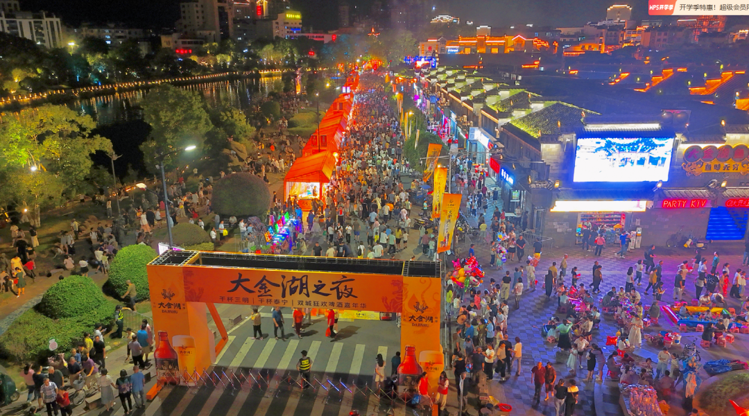 真汉子喝大金湖。9月30至10月6日,“大金湖之夜”双城狂欢啤酒节在三明下洋捷龙广场、泰宁城隍庙广场同步进行。