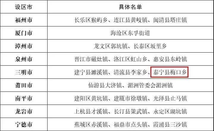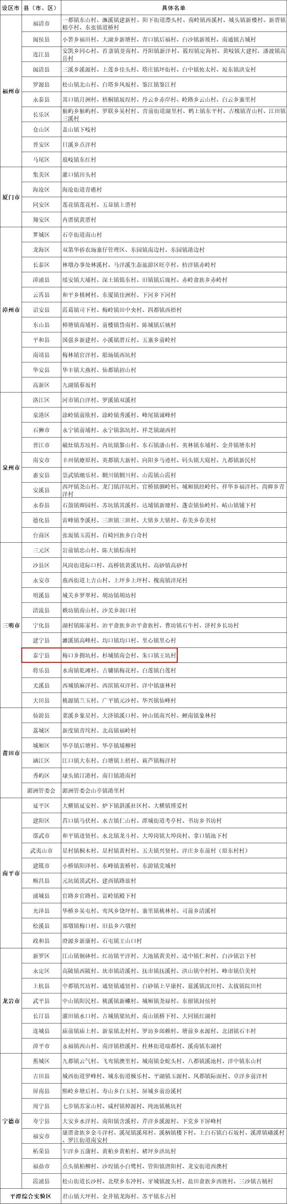 最新! 福建省农业农村厅发布 第二批省级乡村振兴示范乡镇、示范村 名单公示公告, 全省23个乡镇(街道)、259个村上榜。 其中, 泰宁县梅口乡、梅口乡拥坑村、 杉城镇南会村、朱口镇王坑村在列。 一起来看——