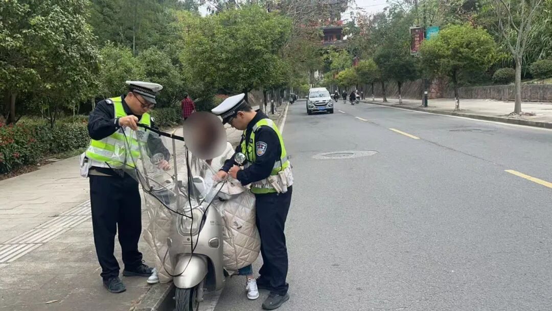 发现违规加装遮阳伞、雨棚的车辆后,民警坚持“教育为主、处罚为辅”的原则,一方面耐心向车主讲解违规加装的安全危害和相关法律后果,让车主从思想上认识到问题的严重性;另一方面,民警现场提供工具,协助车主拆除违规装置,切实消除安全隐患。