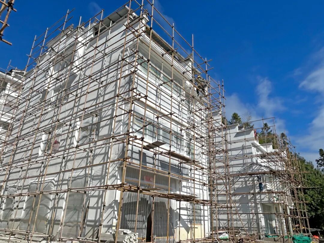 11月14日,在泰宁县杉城镇长兴村立面改造提升项目工程施工现场,工人们正在搭脚手架,刷外立面底漆,粉刷房屋外墙。民房披“新衣”,乡村焕“新颜”,一幅幅绚丽多彩的乡村画卷正徐徐展开。