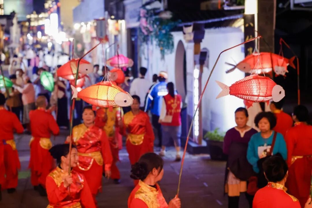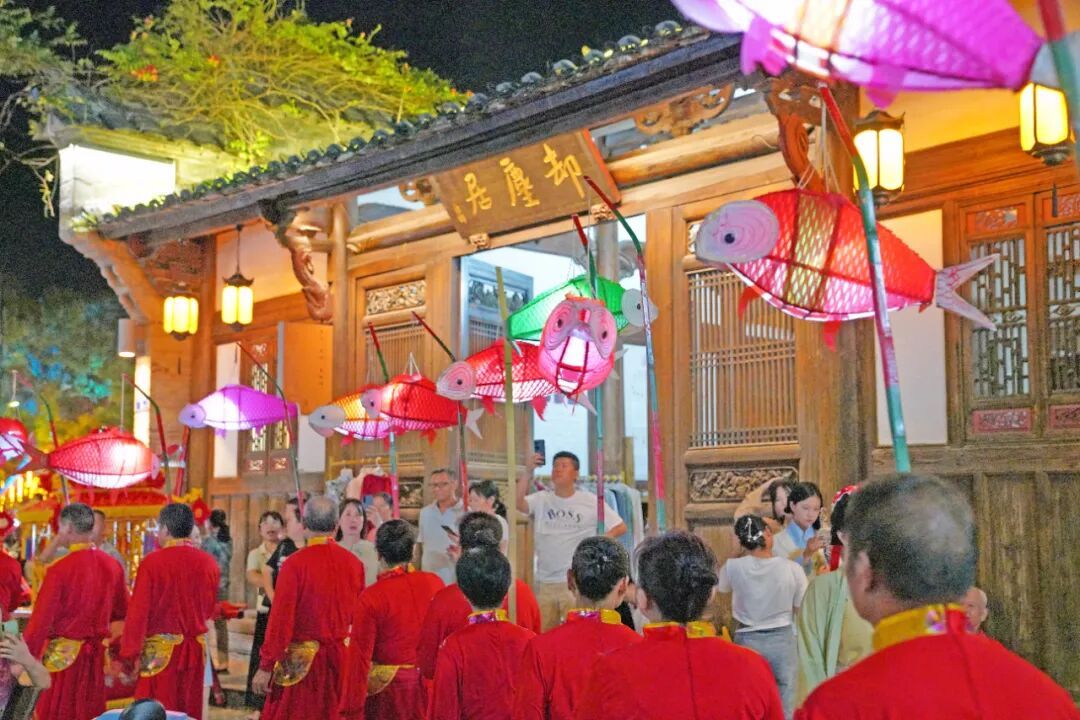 蒋周生 摄 从单一传承到双向奔赴 “非遗的生命力在于传承,而传承的核心在于人。泰宁古城所提供的,不仅是一个展示的舞台。”泰宁县文化馆馆长肖秋红说。 茶东坑鱼子灯是泰宁县杉城镇东石村独有的一种游灯习俗,始自清朝道光年间,至今已有180多年的历史,2015年10月列入三明市第四批非遗名录。前几年,随着村里人口搬迁流失,这门热闹了几代人的传统技艺,一度沉寂了数年。 2023年,泰宁古城邀请鱼子灯表演队伍每周到古城进行常态化表演,各重大节日到古城开展特色民俗表演。