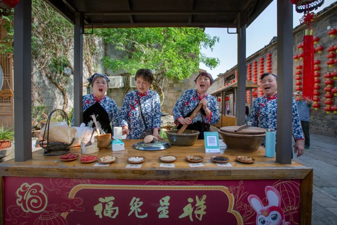 大龙擂茶2015年10月列入三明市第四批非遗名录。李华的这家店,不仅是传承的阵地,也是生意的旺铺,在旅游旺季,单月营业额能冲上10万元。 与此同时,古城内不远处的博览苑门口,响起了嘹亮婉转的泰宁山歌。传承人饶桂英和她的伙伴们一开嗓,便迅速吸引了一群游客驻足观赏,里三层外三层,好不热闹。 “我们经常把唱歌和擂茶结合起来。”饶桂英在表演间隙告诉记者,“游客一边喝着擂茶,一边听我们唱本地的风土人情,都觉得特别有意思,参与感很强。”歌声、茶香和游客的欢声笑语,在古城的夜空下交织成一幅动人的文旅融合画卷。在这里,43项非遗完成了从静态展示到沉浸式体验的华丽转身。