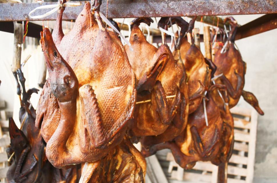 街头巷尾的小吃摊前, 熏鸭的香气在寒风中愈发浓郁。 经松枝慢熏的鸭肉, 皮脆肉嫩,再用本地辣椒翻炒, 辣意顺着暖意蔓延至全身, 是泰宁人冬日里最地道的 “御寒美味”。