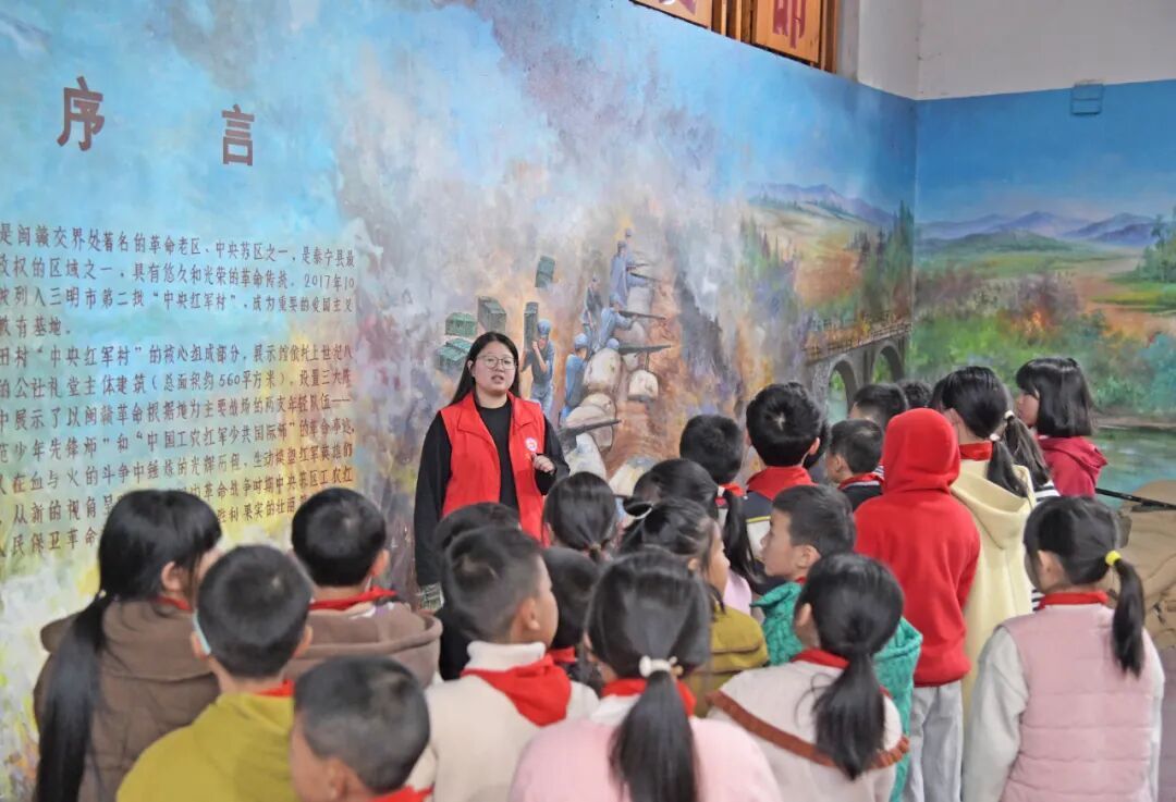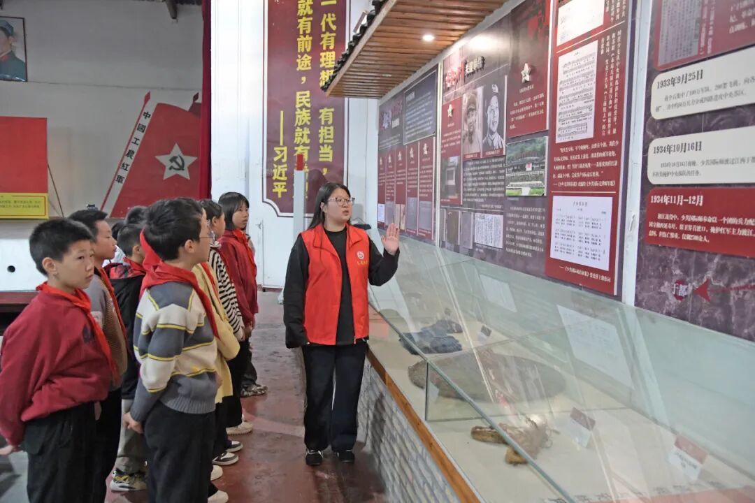 作为活动核心环节,宣讲紧扣党的二十届四中全会精神,依托大田乡深厚红色文化底蕴展开。讲解员以红色展馆为切入点,既系统阐释“十四五”时期国家发展取得的历史性成就,生动描绘“十五五”时期经济社会发展宏伟蓝图,又深情讲述大田乡少年红军革命事迹,细致分享当地红色文化传承与文旅融合发展的创新实践,给同学们带来了许多启示。 “贯彻党的二十届四中全会精神要从教育抓起,走出课堂实地研学,能让孩子们亲眼见红色实物、亲手触摸红色历史,更易理解党的创新理论。”大田乡讲解员邱宇琪表示。