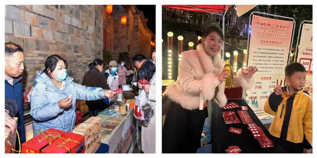 活动在泰宁县古城左圣路、民俗文化广场及进士巷划分四大核心区域,精准覆盖不同消费需求。美食嘉年华专区中游浆豆腐、碧玉卷、状元糍、擂茶、暖菇包等泰宁本土特色小吃集中亮相,本地美食传承人现场展示制作技艺,设置可体验式制作销售环节,让市民与游客近距离感受非遗美食的独特魅力。名特优产品展销区汇聚本地优质企业及合作社,朱口小籽花生、笋竹制品、泰宁大米、大金湖系列酒水等生态好物集中展销,统一设计的展位突出“绿色有机”特质,试吃、产品推介等活动同步开展,拓宽农产品销售渠道。