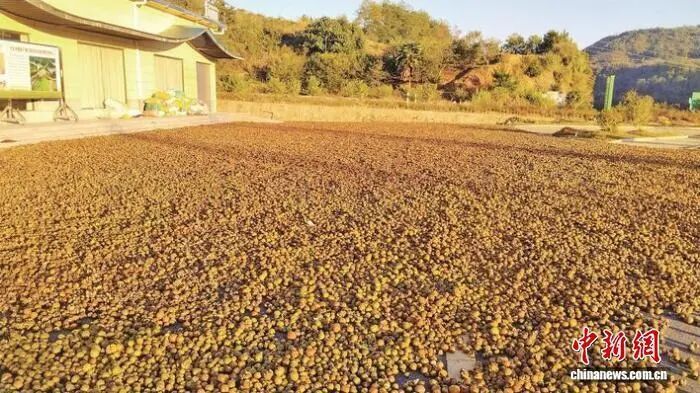 图为基地晒的油茶果。戴雨萱摄 官江村位于泰宁县南端丘陵地带,属亚热带季风气候,光照充足、雨量充沛,土壤富含有机质,为油茶生长提供了良好环境。2023年,看准了家乡油茶产业的潜力,在外打拼的周福忠返乡投资500余万元,创立了生态农业企业。 周福忠建起4.5亩标准化油茶生产加工基地,清洗、烘干、压榨、灌装等现代化生产线一应俱全。同时,注册了茶油品牌,成功通过农产品SC认证,为山茶油贴上了合规进入市场的“通行证”。 有了公司和品牌,如何带动乡亲们一起干?官江村探索出“公司+基地+农户”的模式,将40余户分散的种植户拧成一股绳,形成了发展合力。