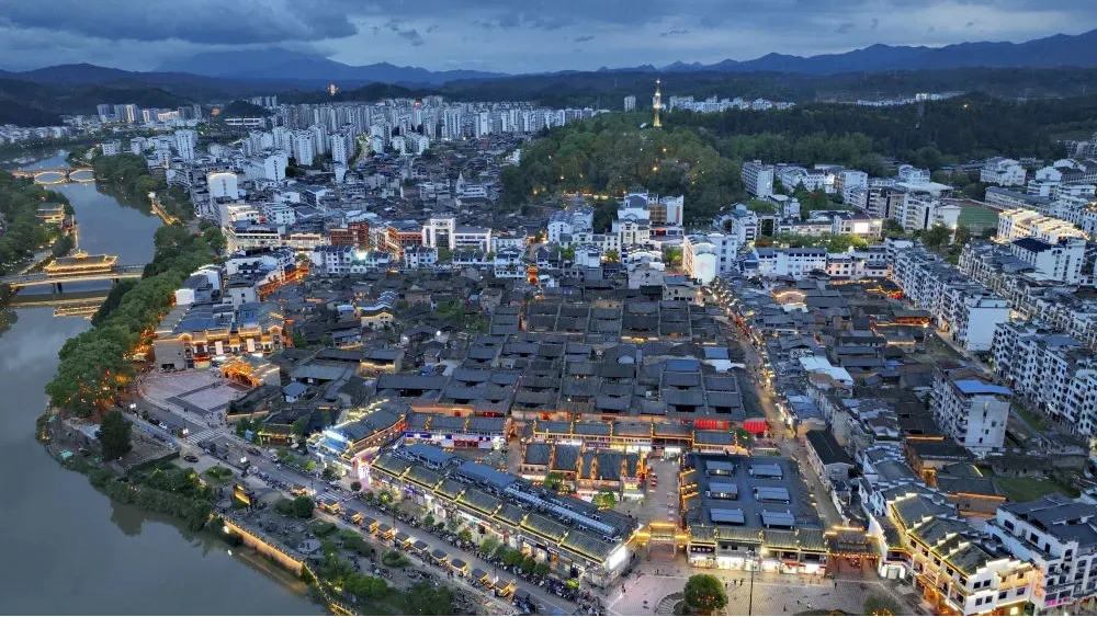 在具体修缮中,不同年代的建筑也对应不同的工艺:对具有保护价值的历史建筑,采用传统麻石、青砖、榫卯工艺进行修复,完整保留原有格局;对一般风貌建筑,则重点修复外立面,内部延续现代生活功能,实现“风貌协调+生活便利”。 “以前房子漏雨,晚上巷子一片漆黑。”在岭上街住了几十年的李阿姨感叹道,“现在房子修好了,污水管通了,路灯亮了,连墙角的古井都成了小景致。” 截至今年9月,肖家巷1号、岭上街47号等6栋建筑的屋面和立面改造完成,街巷围墙整治过半,公共活动空间陆续投入使用。改造后的岭上街,不仅完整保留了“明代街巷肌理、清代至20世纪60年代建筑风貌”的历史层次感,更让老街坊们在熟悉的老宅里,过上了安全、舒适、有品质的新生活。 03 山水城共融 从空中俯瞰,芦峰山楔入城中,朱溪、北溪、黄溪汇流成杉溪穿城过,古巷蜿蜒,遍布着五街、十五巷、九井,及23座明代建筑、39座清代建筑、40座民国建筑,不同时期的建筑在此叠加共生,守护这些历史瑰宝,成为泰宁延续文化根脉、传承红色基因的重要使命。