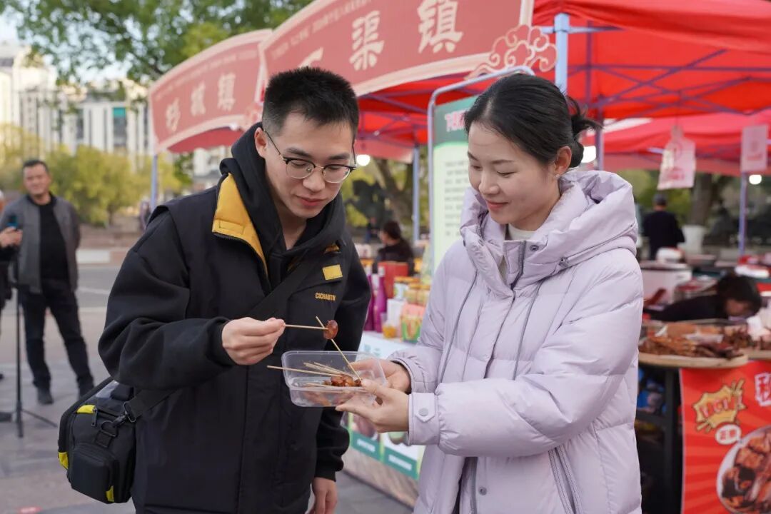 “来尝尝咱朱口的富硒花生!”朱口镇的摊主吴佐梁一边吆喝,一边往游客手里递试吃品。本次活动深挖各乡镇美食精髓,集结了上青乡的游浆豆腐、梅口乡的茶饼、大田乡的笋干……每一口都是刻在泰宁人骨子里的家乡记忆。 活动创新性地 打造“线上+线下”双场景。 线下,华大、慕唯等酒店 推出的“丹霞宴”成了“打卡点”。