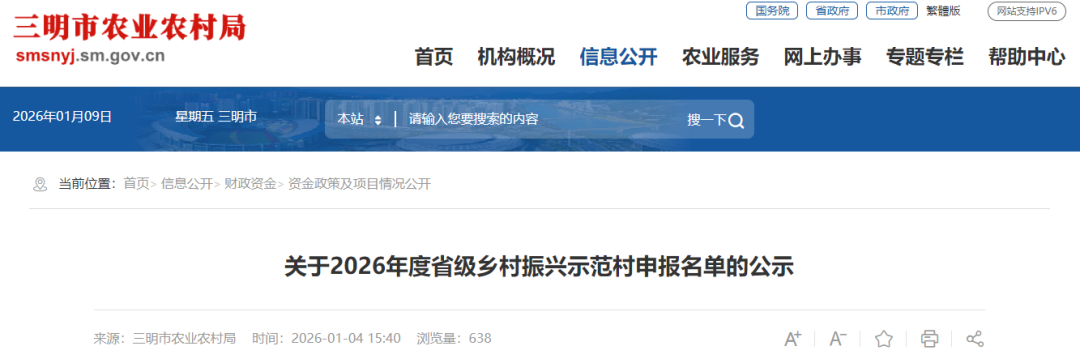 三明市农业农村局发布