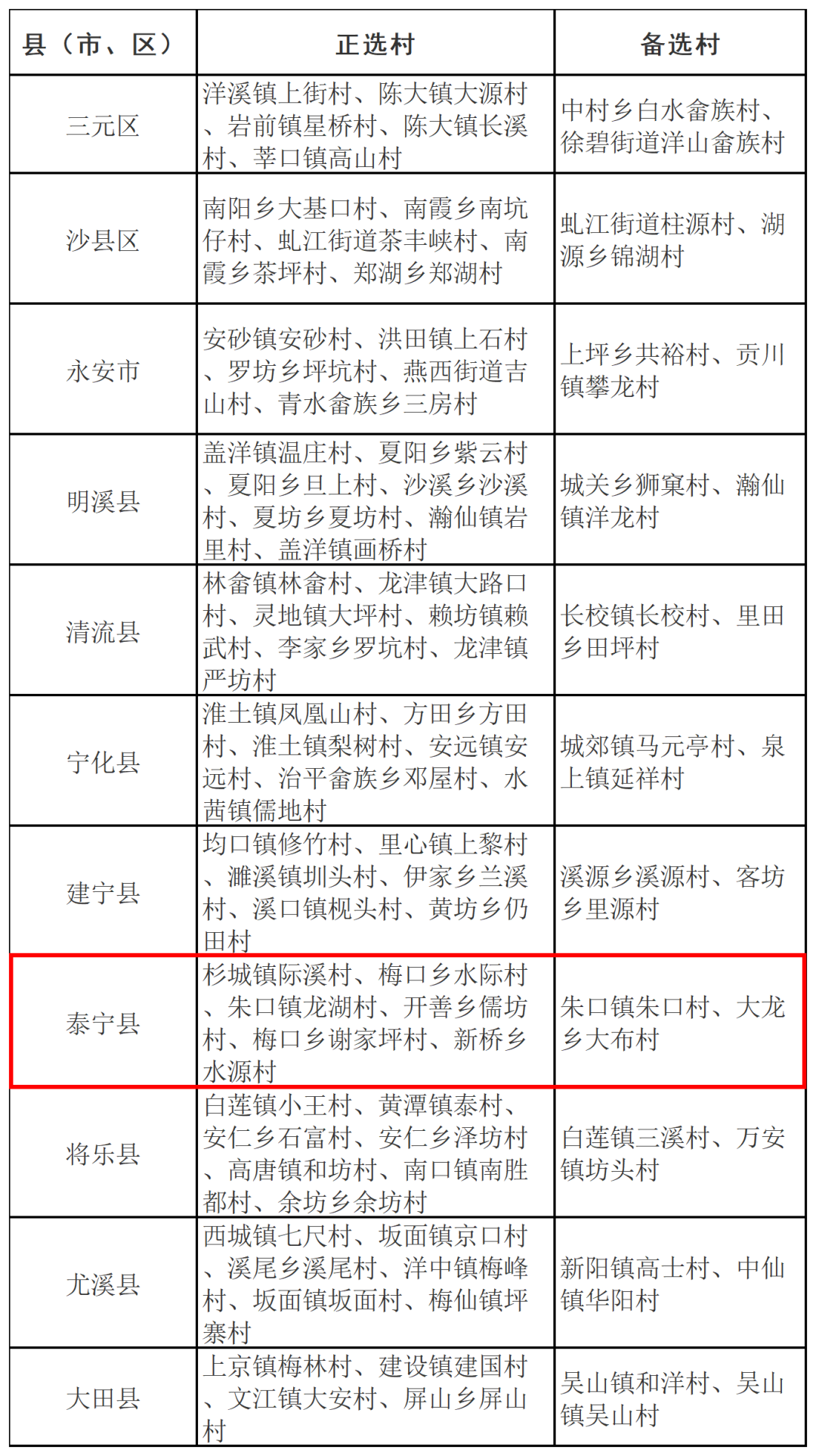 名单公示!泰宁8个村上榜