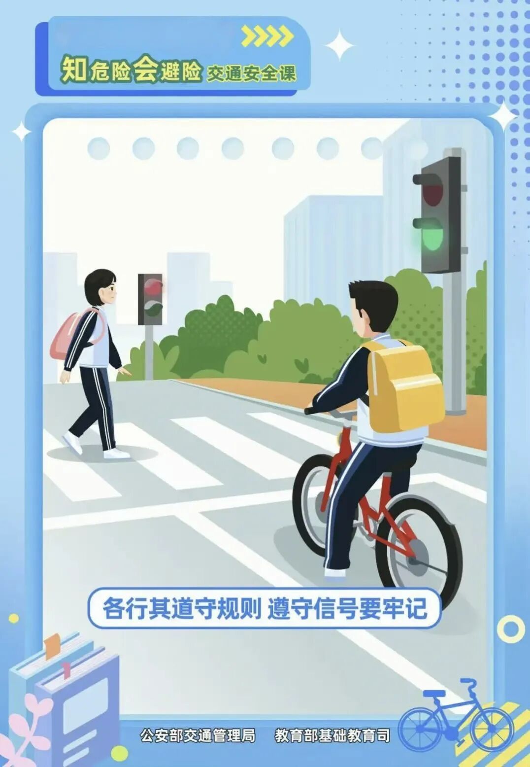 道路千万条 安全第一条 无论是步行 骑行还是乘车 多一分重视 就多一分安全 请各位居民们 务必牢记交通安全知识 养成正确的出行习惯 共同防范交通事故的发生