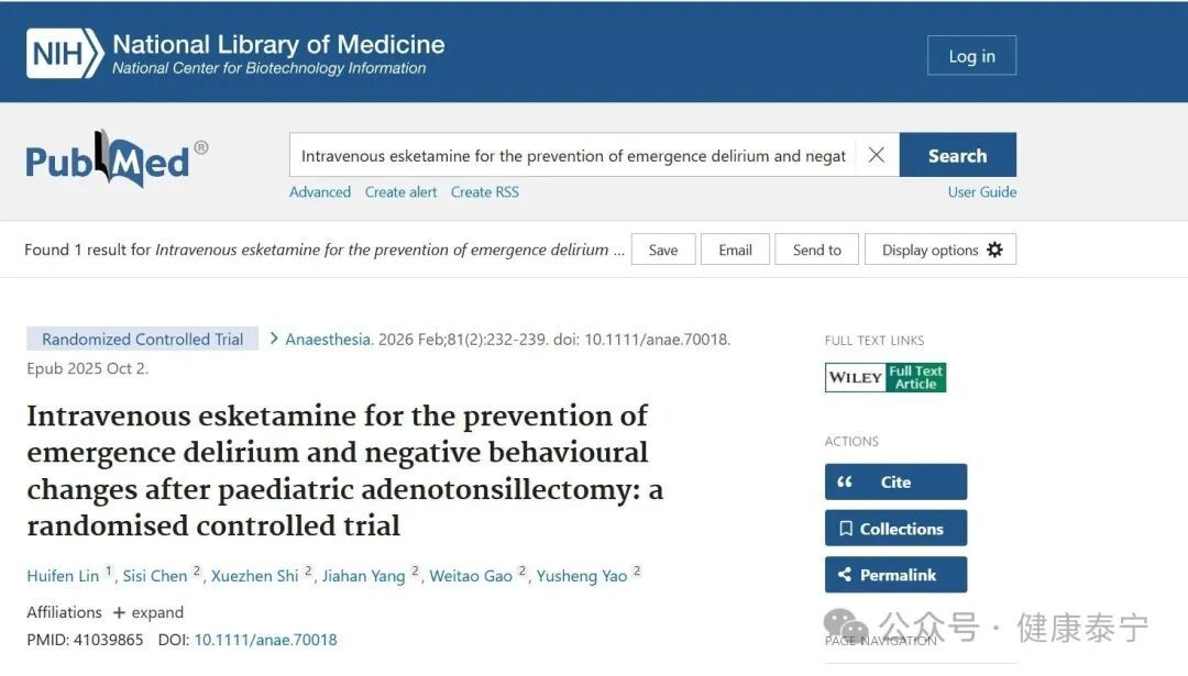 该研究评估术中静脉注射艾司氯胺酮预防儿童腺样体扁桃体切除术后苏醒期谵妄及负性行为改变的有效性与安全性。结果显示,在接受腺样体扁桃体切除术的儿童中,术中静脉输注0.2 mg.kg⁻¹艾司氯胺酮可显著降低儿童苏醒期谵妄和负性行为改变的发生率,且益处持续至术后第30天。 《Anaesthesia》是英国麻醉医师协会旗下历史悠久的官方期刊,国际影响力广泛,学科覆盖全面。该刊每年发表的高水平原创论文不足百篇,聚焦全身与区域麻醉、重症监护及疼痛治疗等前沿方向。据2025年中科院期刊分区,其位于医学大类1区,麻醉学小类1区Top期刊行列。
