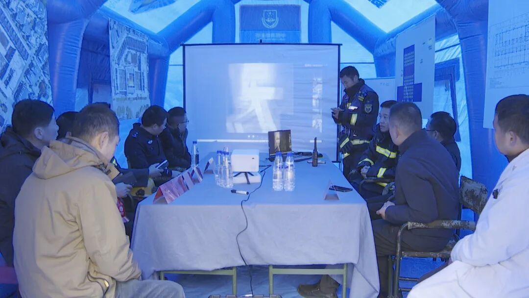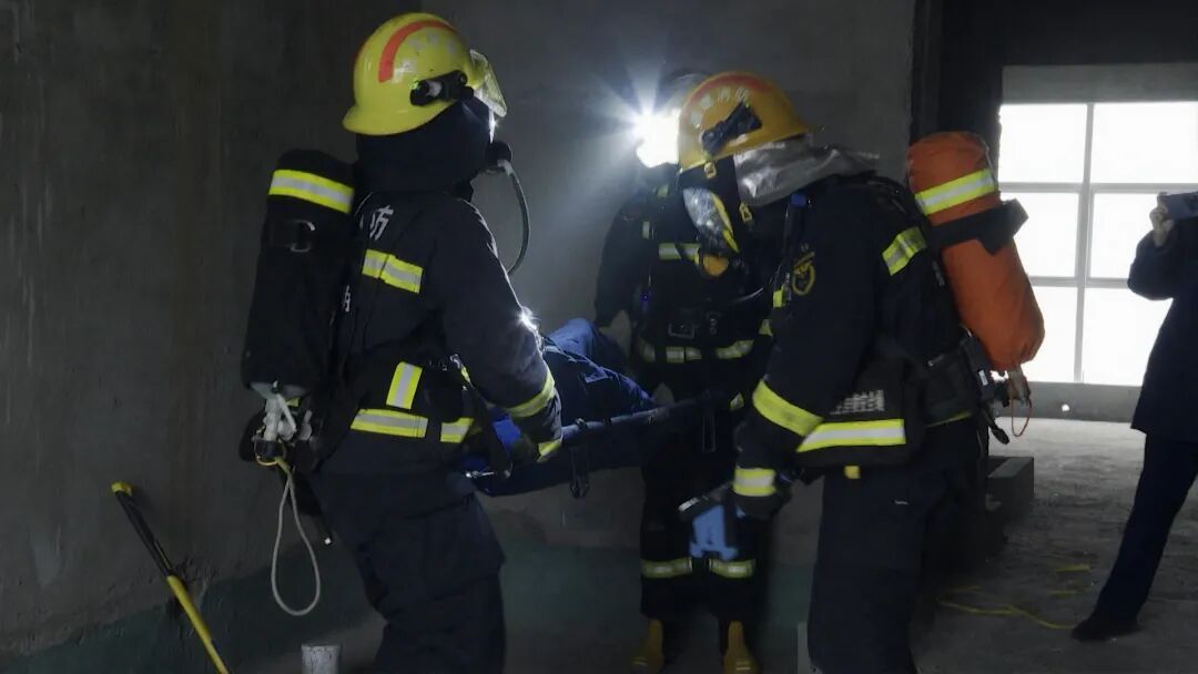 现场指挥部综合运用消防控制室、无人机、人员询问等手段研判火情,科学部署救援任务。演练聚焦高层火灾救援难点:登高车实施外部救援与控火,内攻组铺设干线、破拆障碍,设置水枪阵地强攻近战,搜救组携带热成像仪逐层搜救转移“被困者”。各联动单位依职责完成警戒、技术支撑、关阀断电、医疗救护与供水保障等工作,形成统一指挥、高效协同的作战体系。