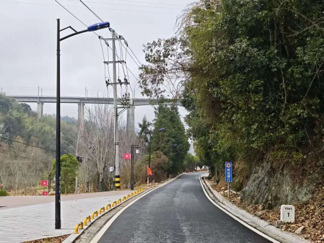 1月22日,夜幕降临, 沿着泰宁县大田乡的八十坵桥头往下, 路边一盏盏崭新的路灯准时亮起。 柔和的灯光穿透夜色, 为晚归的乡亲们 铺就了一条明亮安全的回家路。