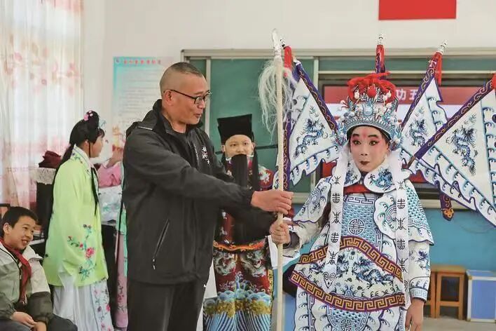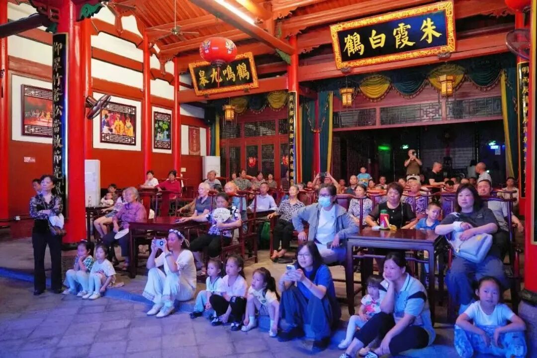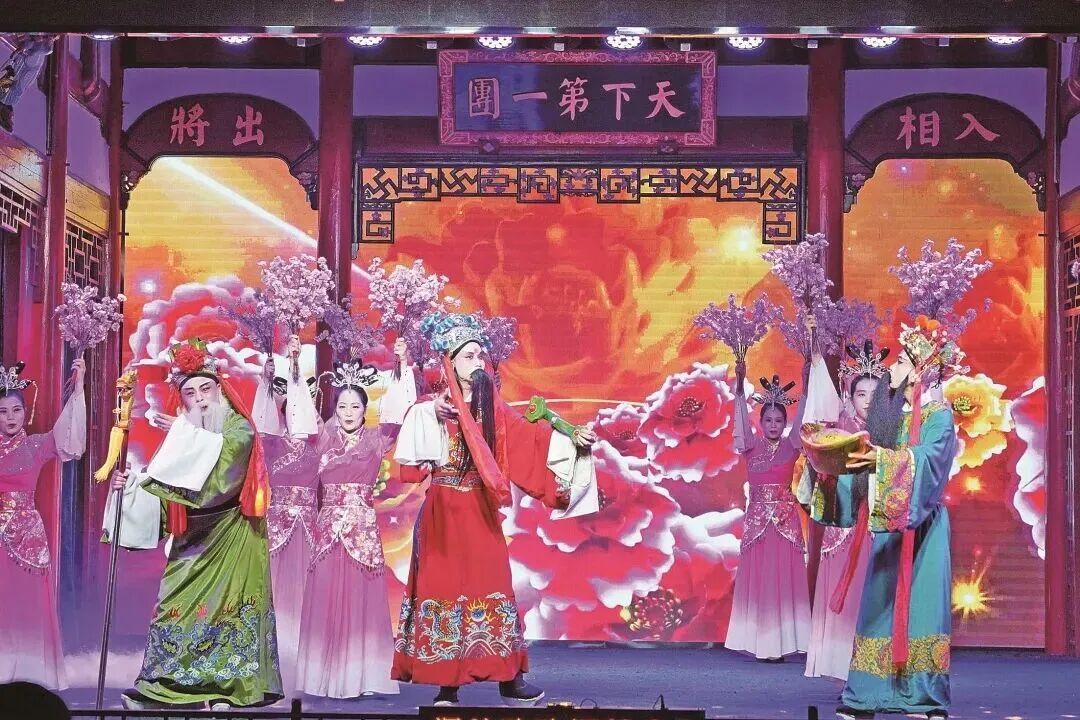 梅林戏《关公怒·巧推》 好戏要有群众基础。“让梅林戏走进校园,不是简单地唱几段,而是要让孩子们真正爱上它。”毛清标说干就干,在全县各学龄段选了4所学校为重点,每个学期组建“梅林戏传承兴趣班”,其他学校结合六一儿童节、校园文化艺术节等,组织演员们进校园开展身段、唱腔、妆造等课程培训和节目创排。孩子们化身武生、花旦、老生等行当学习戏曲动作,亲身体验传统文化的魅力。 请人进来 “每周三、五、六的专场演出,前排总能看到一群小戏迷,跟着剧情鼓掌、喝彩。”毛清标说。孩子们成了“宣传员”,家长们也被吸引着走进剧场,“一对多”的辐射效应渐渐显现,观众群体越来越大。