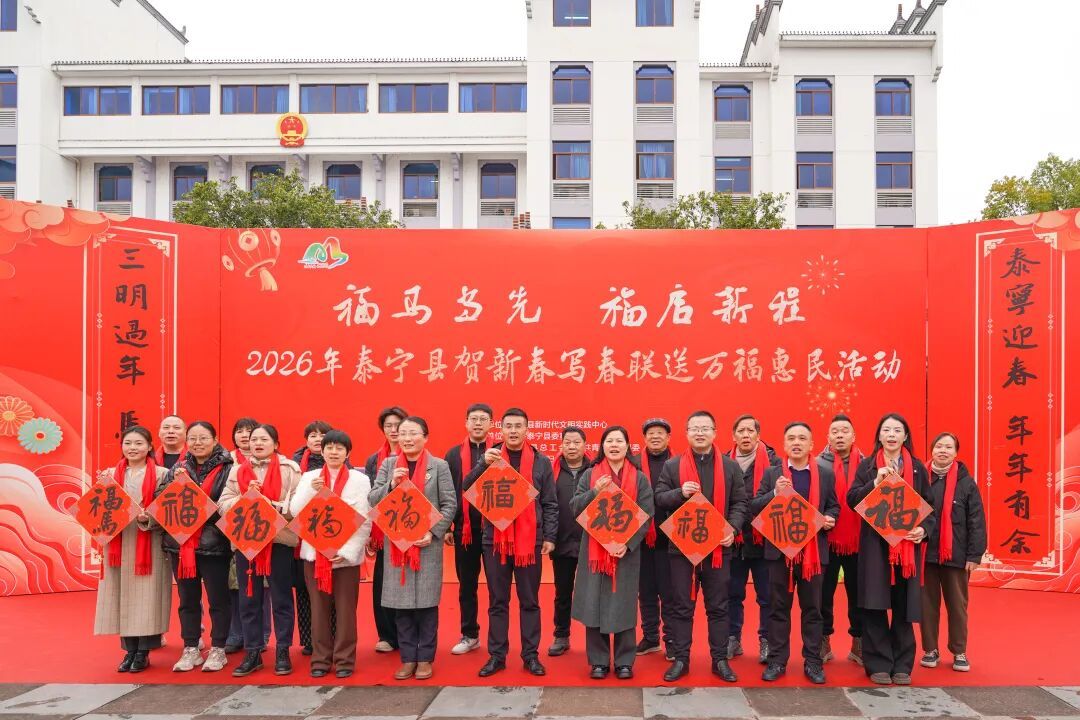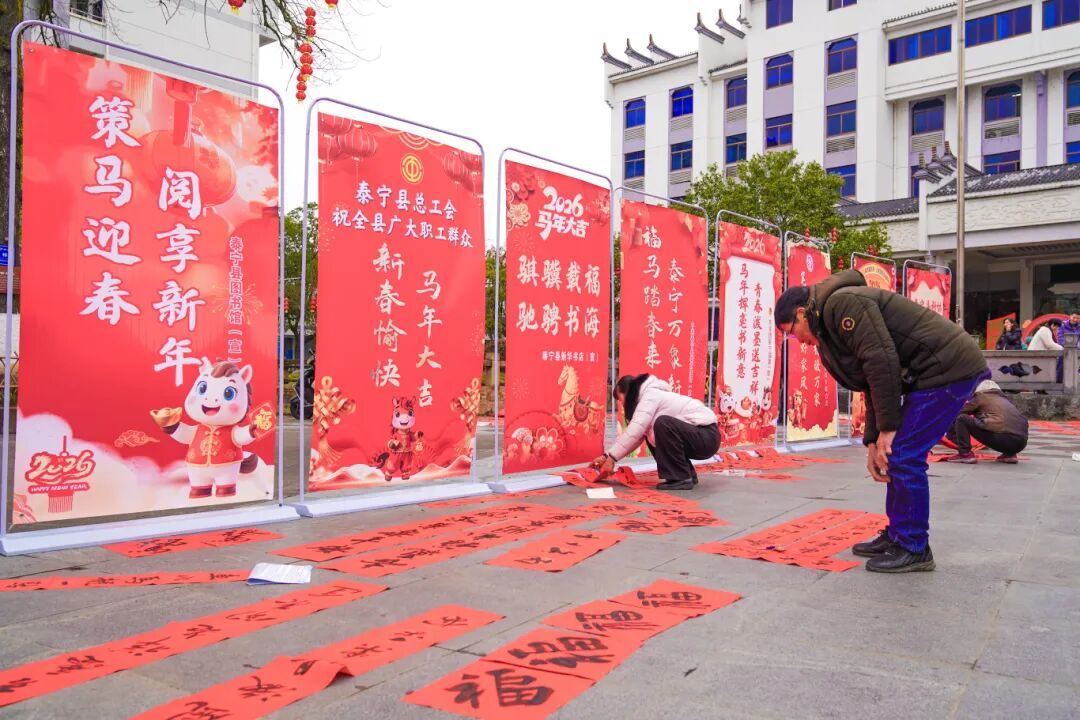 2月11日,由泰宁县新时代文明实践中心指导,中共泰宁县委宣传部主办,泰宁县总工会、共青团泰宁县委、泰宁县妇联、泰宁县科协、泰宁县文联、泰宁县计生协会、泰宁县新华书店承办,泰宁县图书馆、泰宁县书法家协会、泰宁县青年人才驿站协办的“福马当先•福启新程”2026年贺新春写春联送万福惠民活动在市民广场举行,为即将到来的新春佳节增添了浓浓的传统文化韵味。