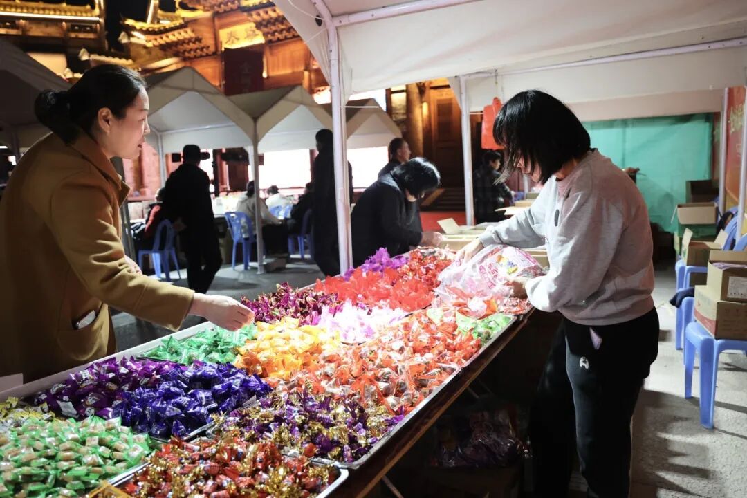 活动期间,城隍庙广场张灯结彩、人气旺盛,各类美食摊位整齐排布,香气四溢。本次活动共吸引参展商户36家,涵盖八闽特色美食、泰宁本土小吃、农特产品、年货礼品、休闲食品等多个品类,现场集中展示展销福建各地特色美食、泰宁本土小吃、名优特产与新春年货,让市民与游客一站式品尝八闽风味、感受舌尖上的年味。不少市民携家带口前来逛市集、品美食、购年货,现场欢声笑语不断,节日氛围浓厚。