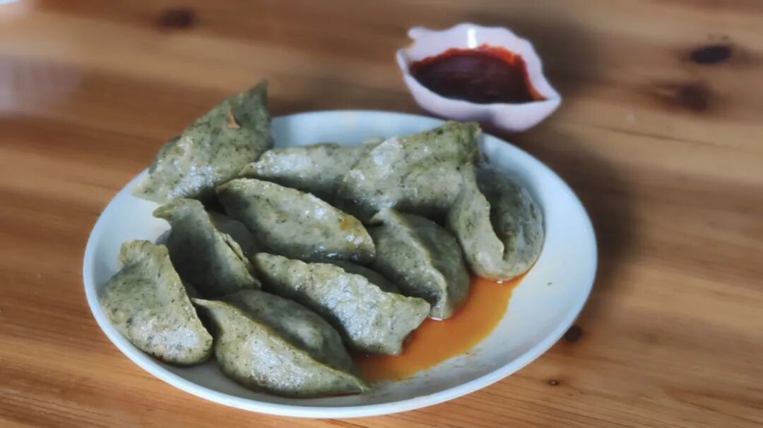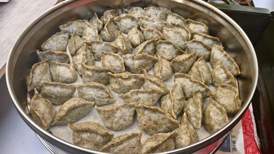 “馅料炒好得先放冰箱保鲜,”许一娥掀开冰箱门,里面整齐码着调好的馅料,“这样油和汤汁会短暂凝固,包的时候不容易漏,蒸出来咬一口,汁水在嘴里爆开,那才叫绝!”她边说边演示,挖一勺馅料放进暖菇皮中央,拇指轻轻按压,掌心慢慢旋转,一个圆鼓鼓的暖菇包便成了。 那为什么是绿色的呢?