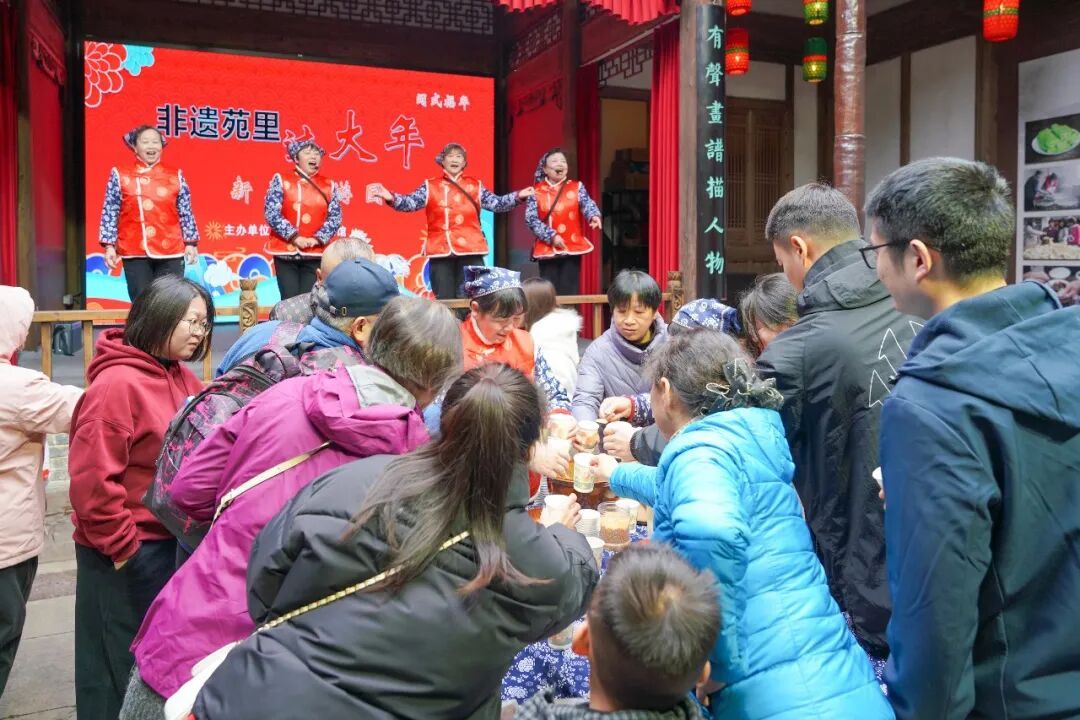 游园会上热闹非凡,来往的群众络绎不绝,处处洋溢着欢乐、喜庆祥和的节日氛围。猜灯谜、品擂茶、制花灯等趣味活动专区各具特色,现场欢声笑语不绝于耳,为市民游客呈现出了一场能吃、能看、能品、能玩的“新春文化大餐”。